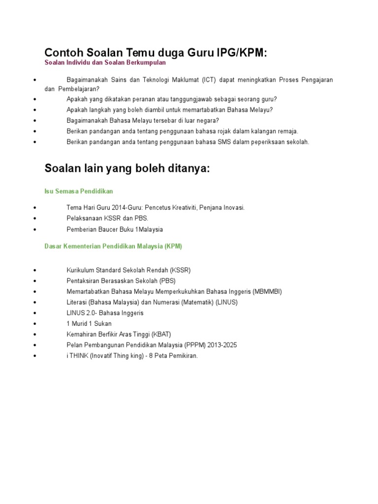 Contoh Soalan Temuduga Guru Tadika Soalan Bn