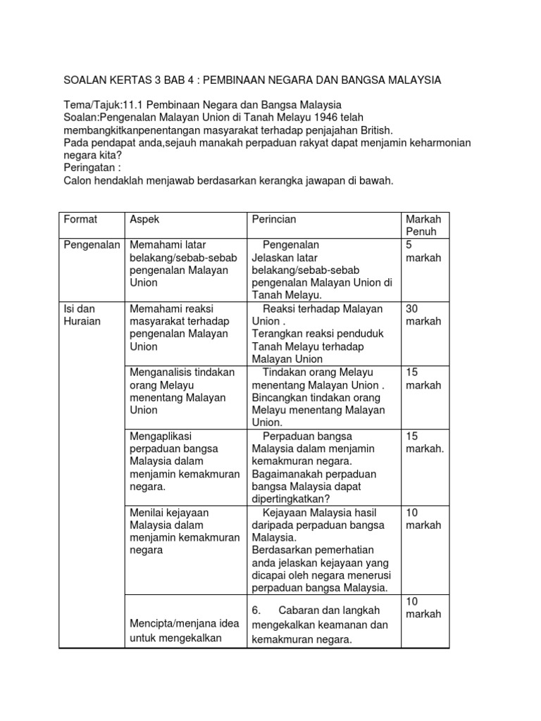 Sejt5 Soalan Jawapan Contoh Kertas 3 Bab 4 Malayan Union