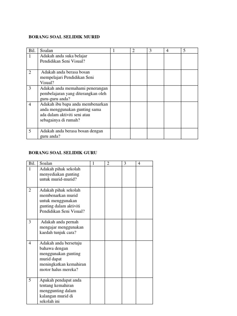 Contoh Borang Soal Selidik 2020 Banyak Contoh Portal Malaysia