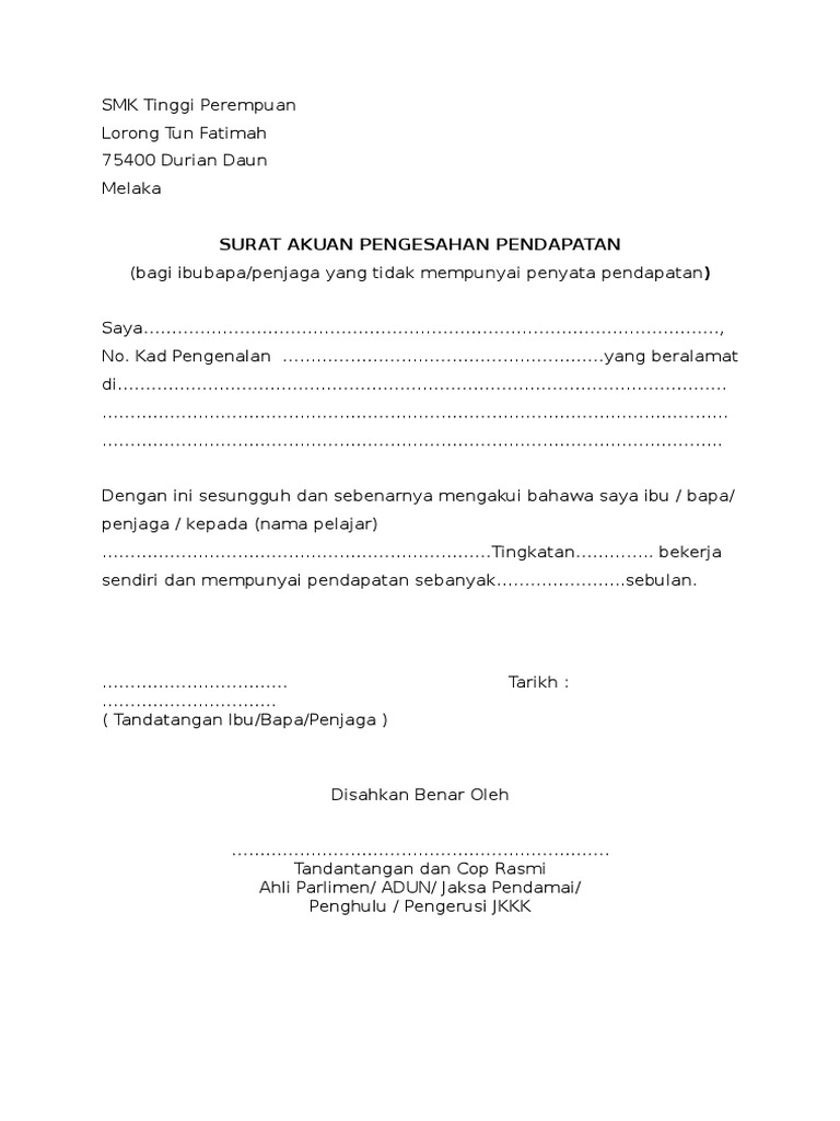 Contoh Surat Akuan Pengesahan Pendapatan Bagi Yang Bekerja Sendiri Gantikan Slip Gaji Edu Bestari
