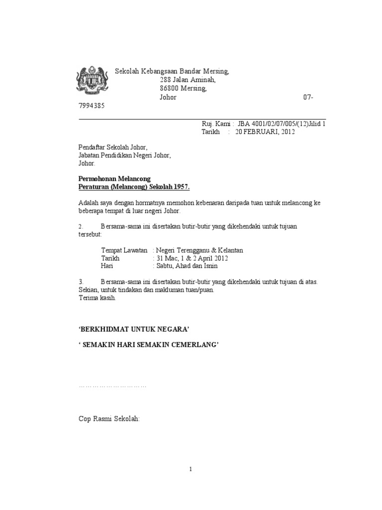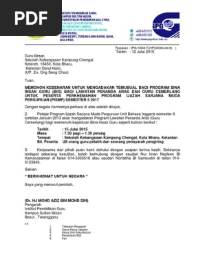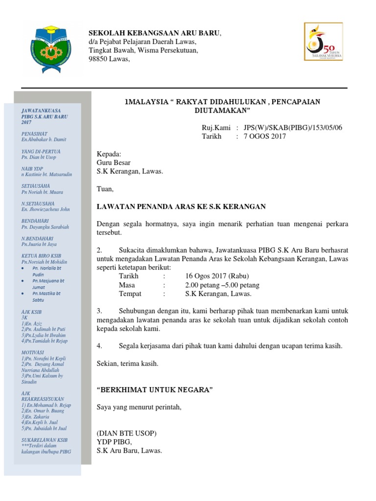 Contoh Surat Rasmi Lawatan Penanda Aras Nice Info B