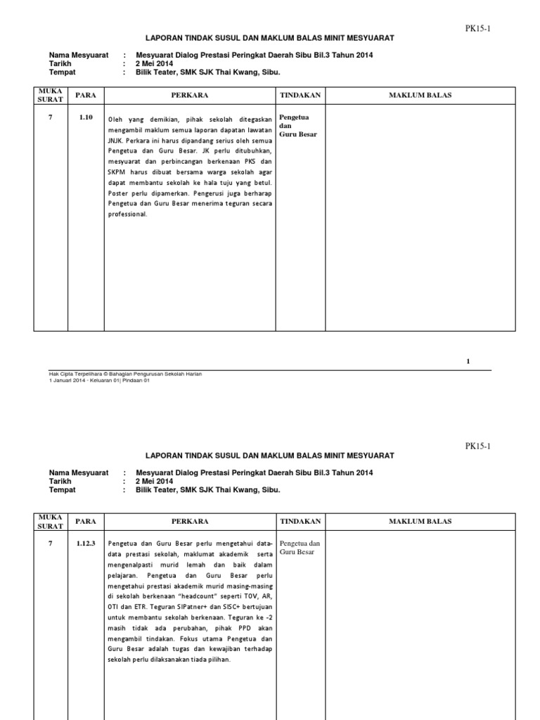 Pk 15 1 Maklum Balas Minit Mesyuarat