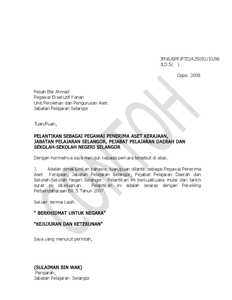 Contoh Surat Perlantikan Penerrima Aset Kpsm