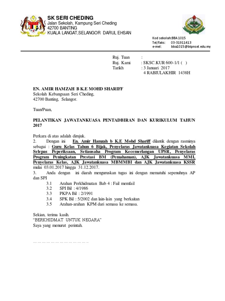 Muat Turun Contoh Surat Surat Pelantikan Jawatankuasa Di Sekolah Cikgu Share