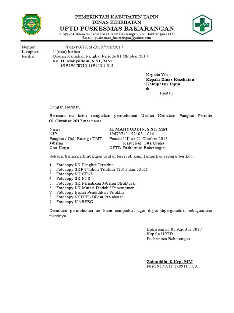 Contoh Surat Pengantar Usulan Kenaikan Pangkat Pns Kumpulan Surat Penting