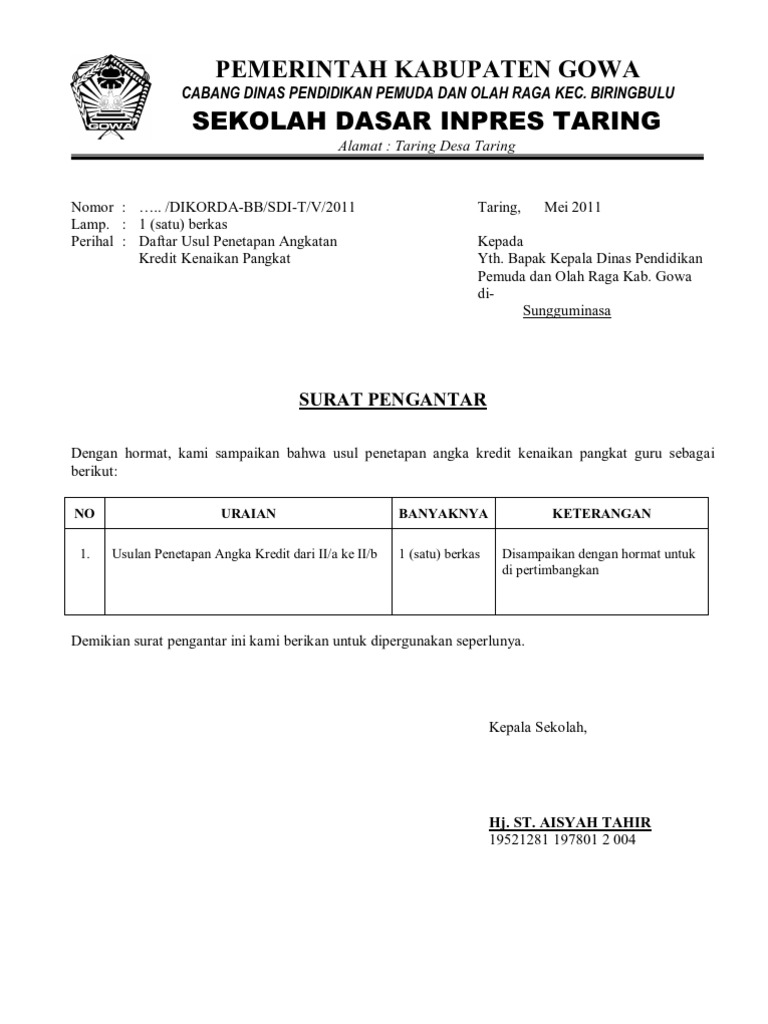 Contoh Surat Pengantar Kepala Sekolah Untuk Kenaikan Pangkat Bagi Contoh Surat