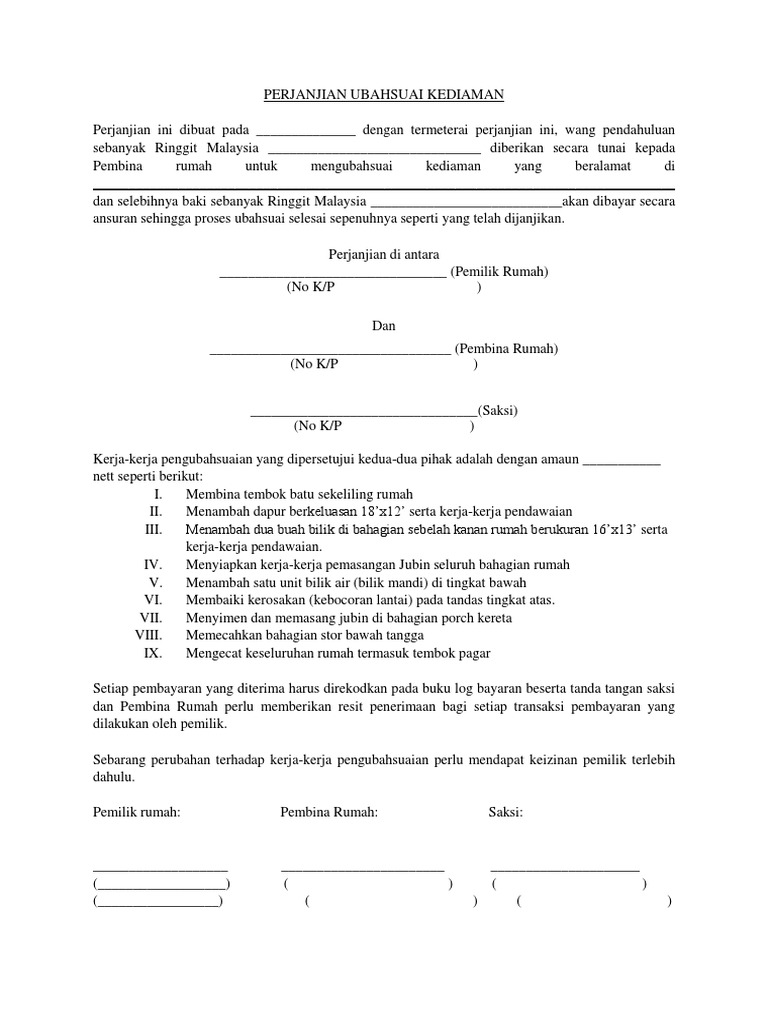 Surat Perjanjian Ubahsuai Rumah