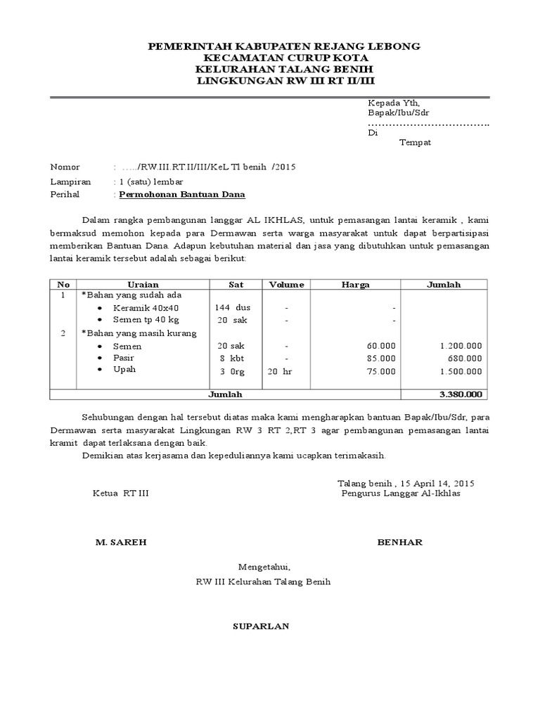 Contoh Surat Permohonan Dana Untuk Pembangunan Masjid Belajar Office
