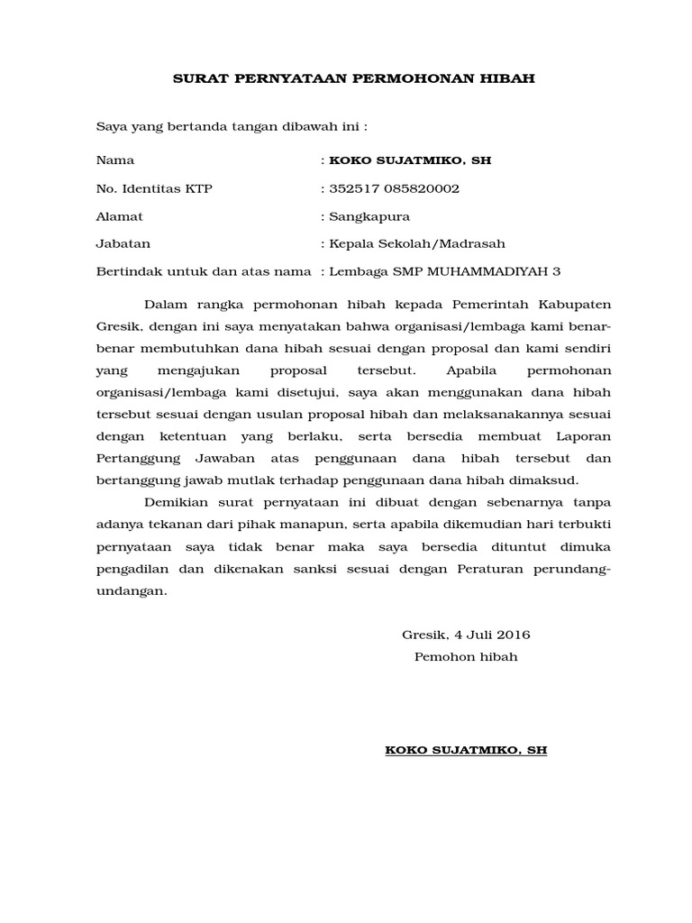 Surat Permohonan Pencairan Belanja Hibah Dilengkapi Rincian Sekolah 2 Futsal 3 Pariwisata Pdf Document