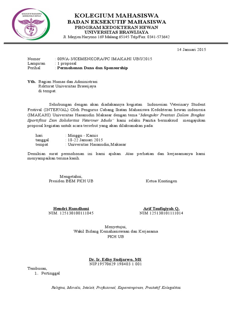 Contoh Surat Permohonan Dana Kegiatan Mahasiswa