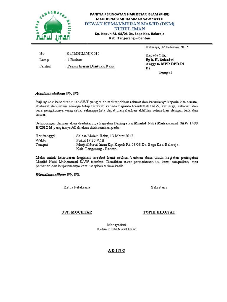 Contoh Surat Permohonan Bantuan Dana Maulid Nabi Kumpulan Surat Penting