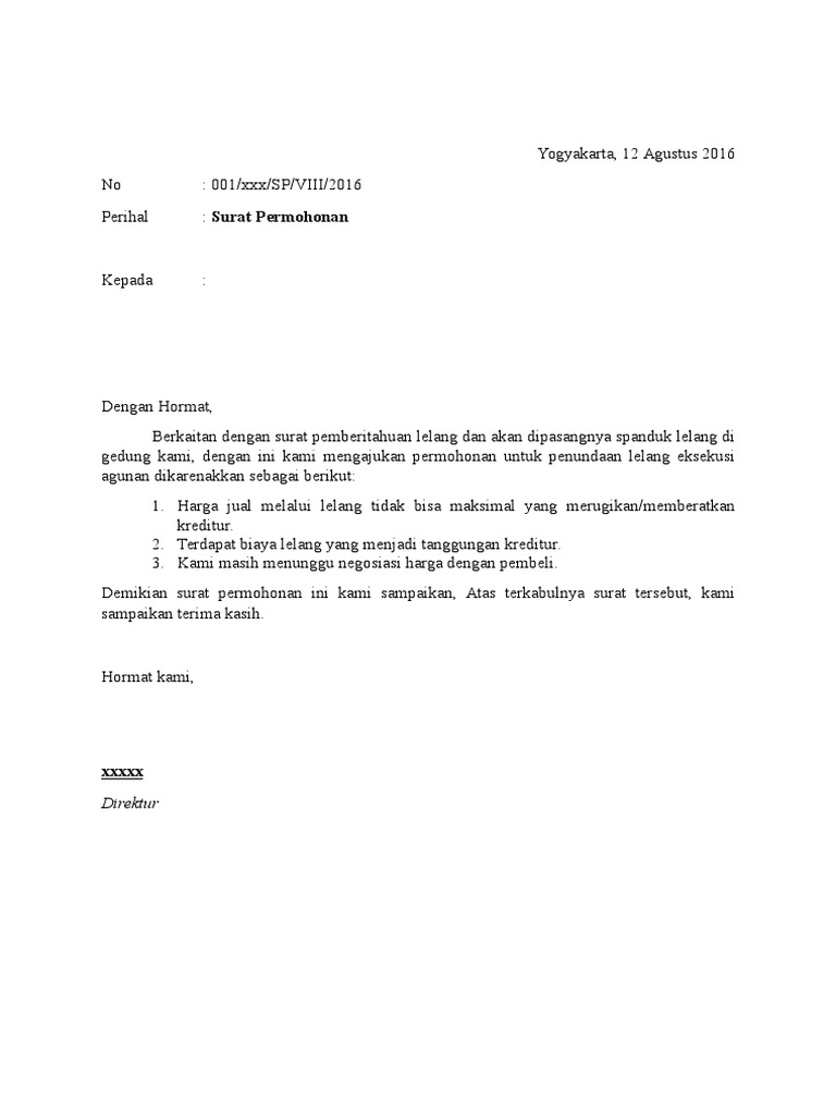 Surat Permohonan Pendundaan Lelang