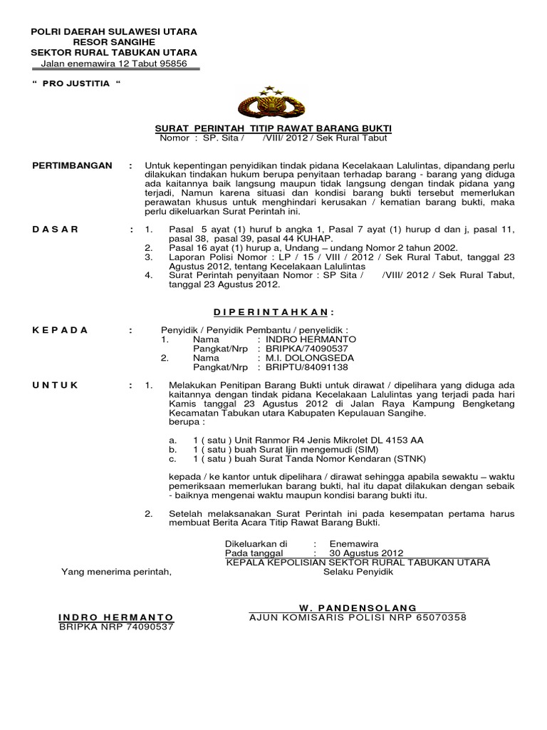 Contoh Surat Pinjam Pakai Barang Bukti Kepolisian Dapatkan Contoh