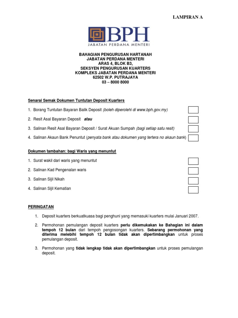 Deposit Contoh Surat Tuntutan Bayaran Balik