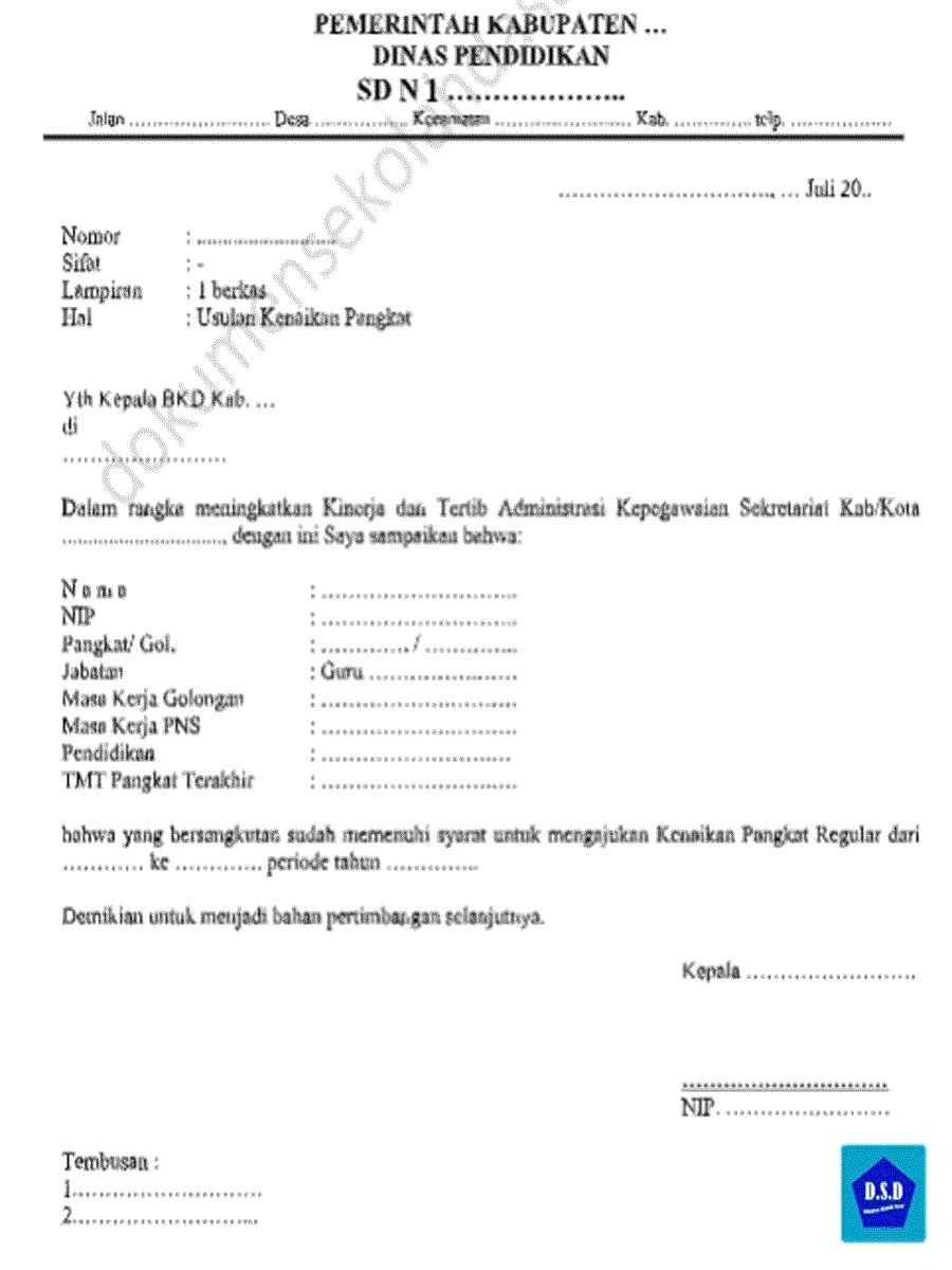 Format Surat Usulan Kenaikan Pangkat Guru Pns Dokumen Sekolah Dasar