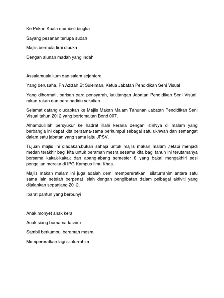 Doc Contoh Teks Ucapan Pengacara Majlis Sempena Jamuan Saadiah M Academia Edu