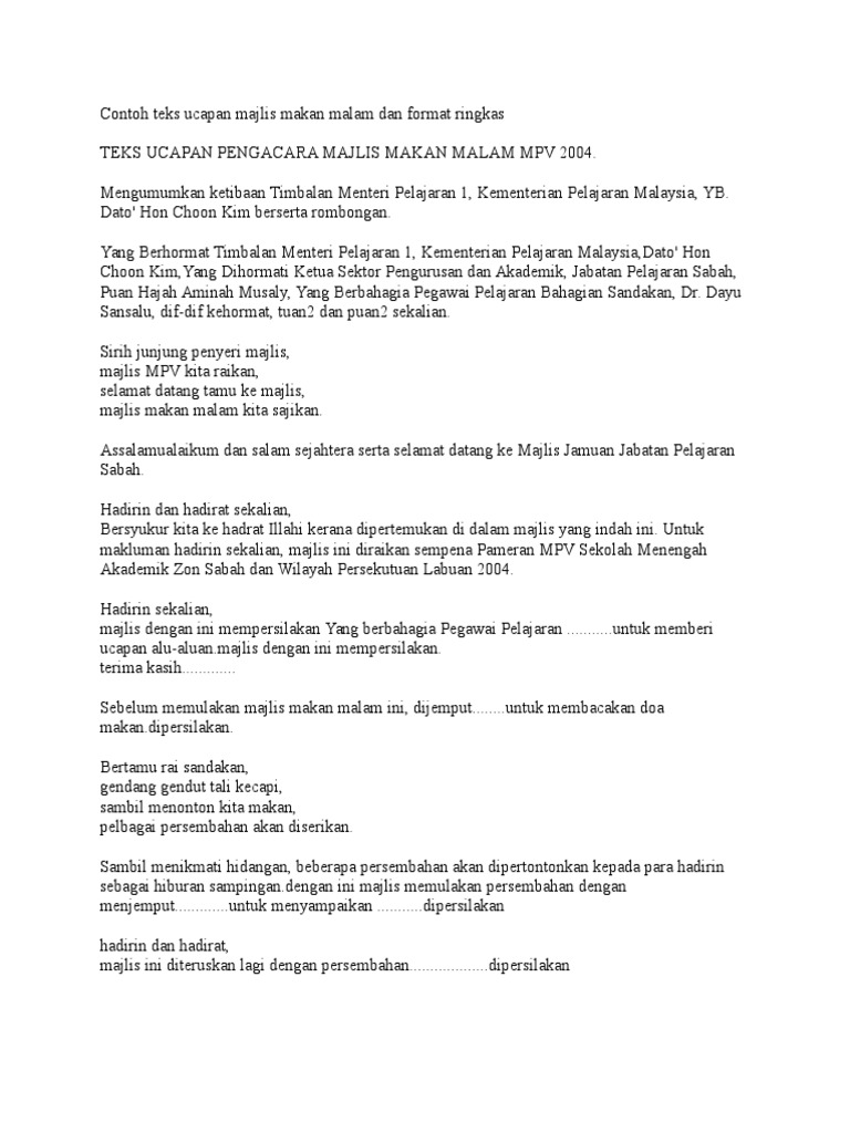 Contoh Teks Ucapan Majlis Makan Malam Dan Format Ringkas2