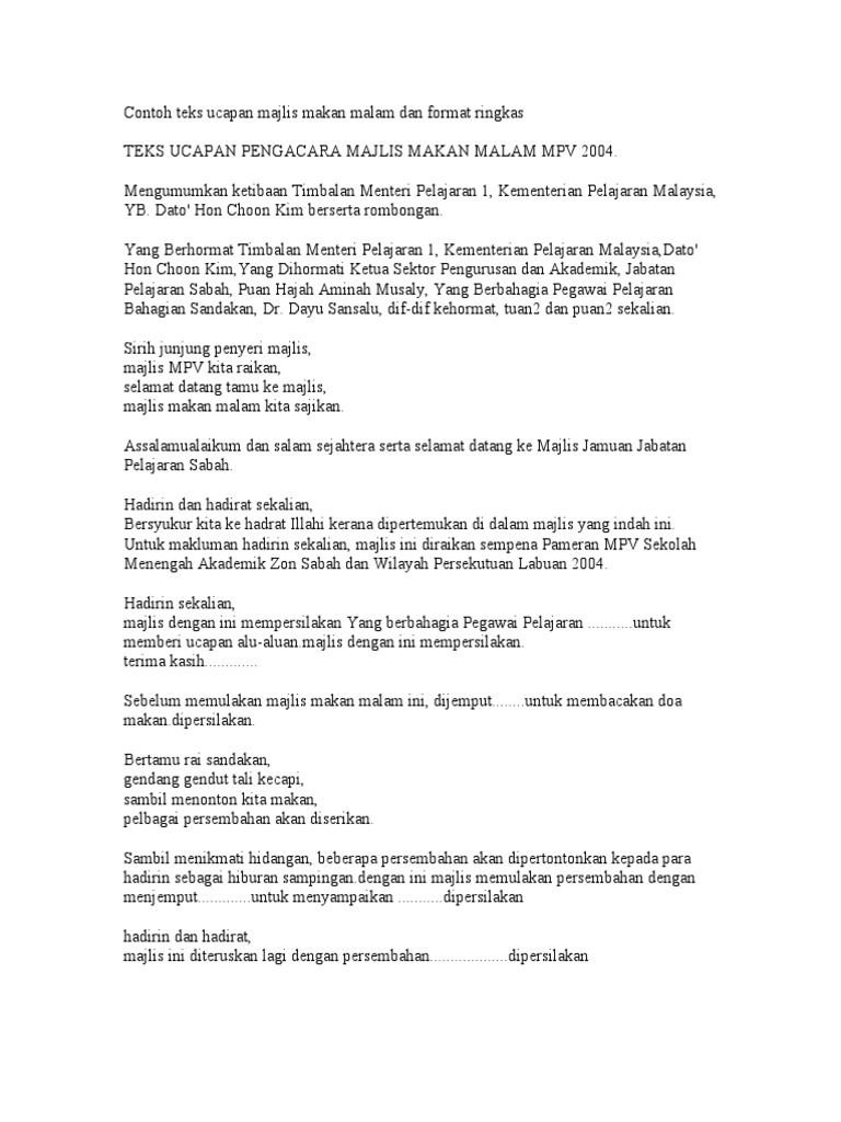 Doc Contoh Teks Ucapan Pengacara Majlis Sempena Jamuan Saadiah M Academia Edu