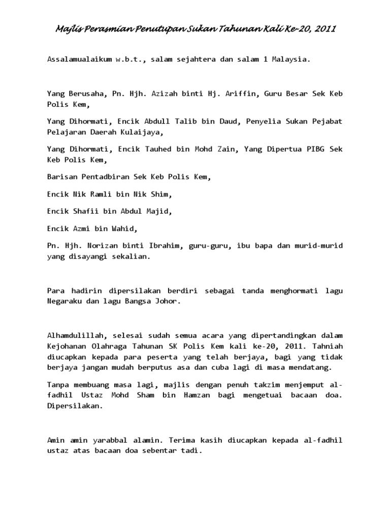 Skrip Majlis Perasmian Penutup Sukan