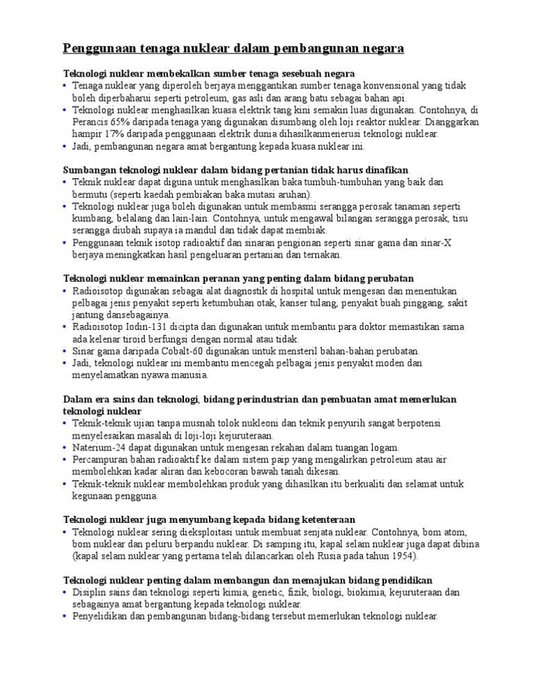 Penggunaan Tenaga Nuklear Dalam Pembangunan Negara