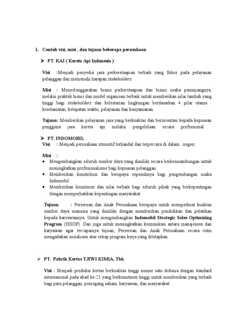 Contoh Visi Misi Dan Tujuan Perusahaan