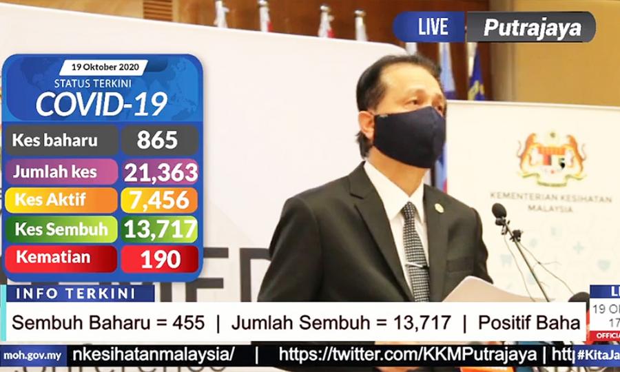 Kenyataan Akhbar Kpk 12 Oktober 2020 Situasi Semasa Jangkitan Penyakit Coronavirus 2019 Covid 19 Di Malaysia From The Desk Of The Director General Of Health Malaysia