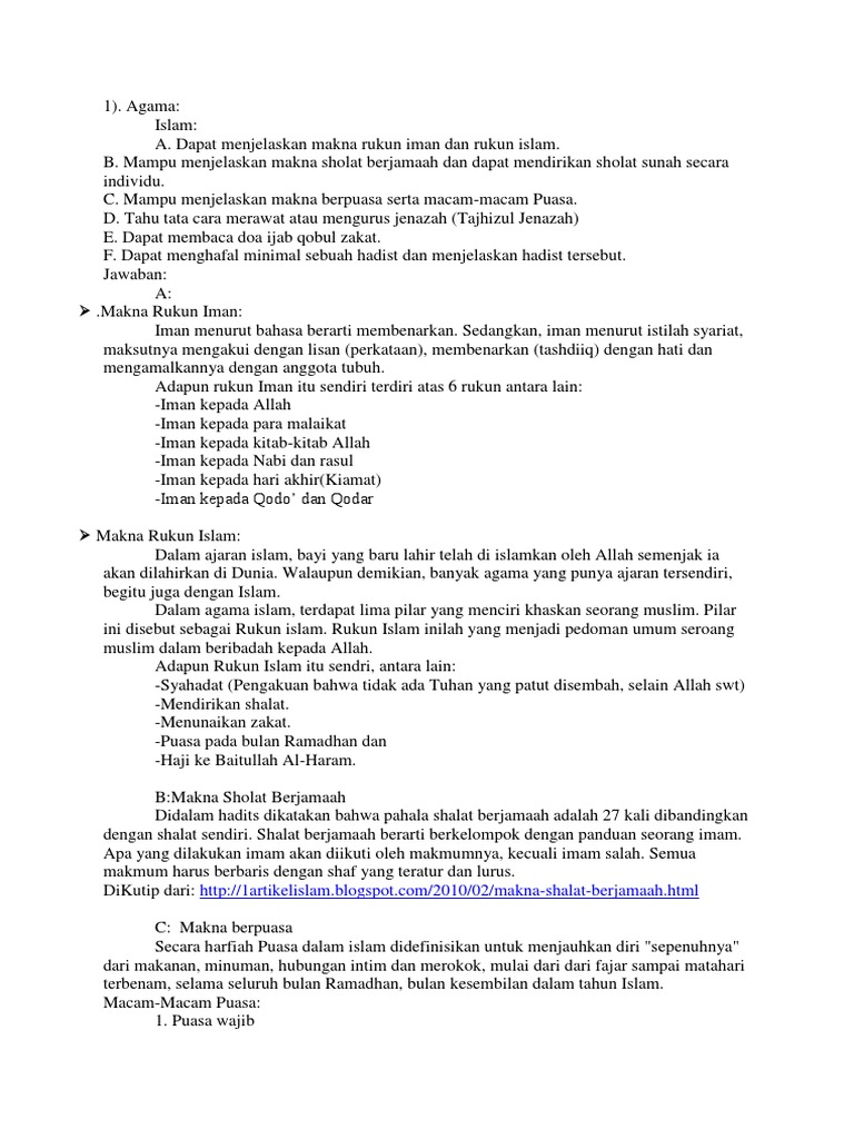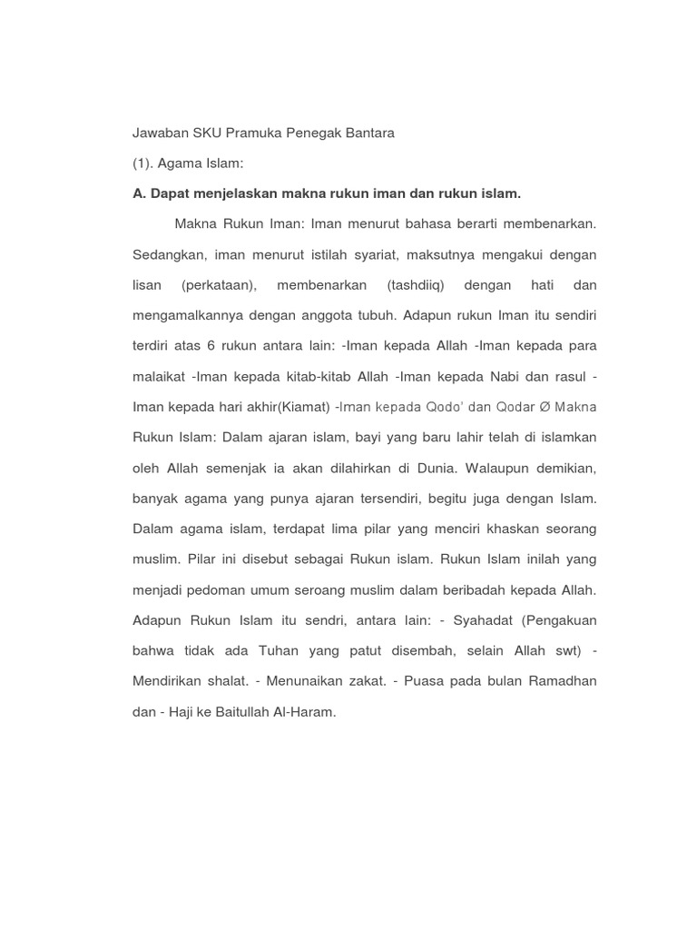 Makna Rukun Iman Dan Rukun Islam Jawaban Sku Bantara