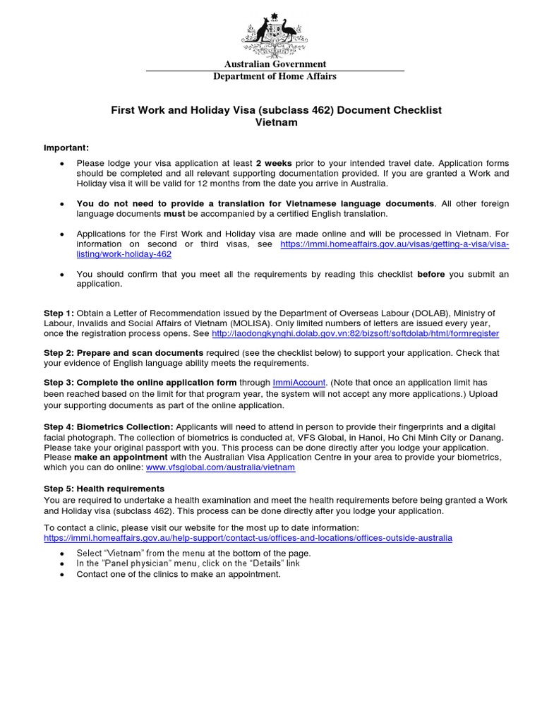 Work And Holiday Visa Checklist En Reupload 270819 Travel Visa Passport
