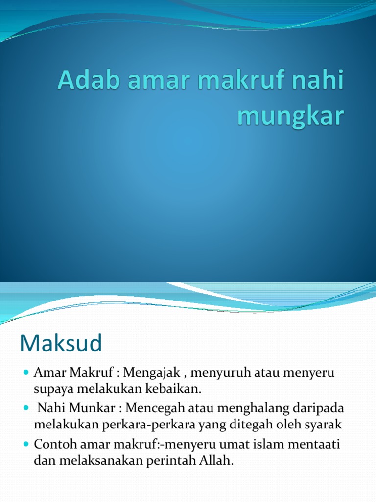 Adab Amar Makruf Nahi Mungkar Mungkar Ialah Mencegah Atau Menghalang Daripada Melakukan Perkara Yang Ditegah Oleh