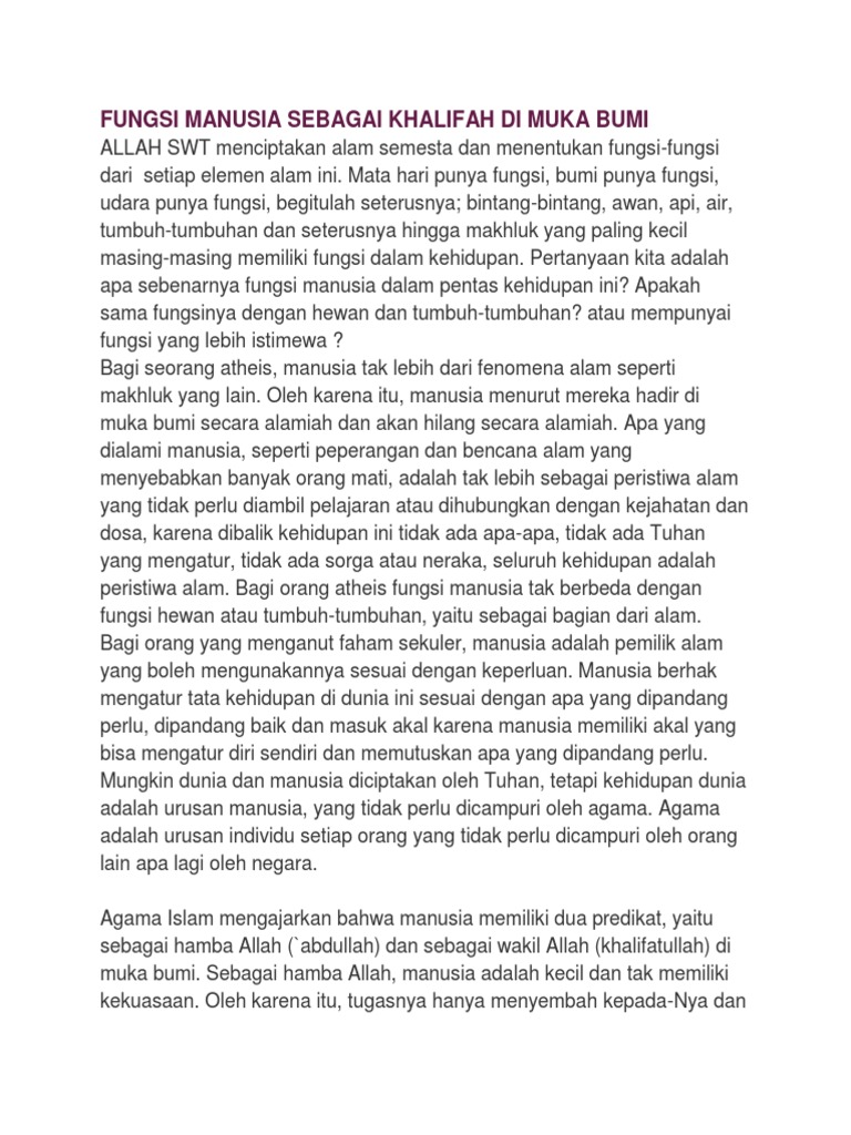 Doc Tugas Utama Manusia Sebagai Khalifah Di Bumi Ini Fahri Yasa Academia Edu