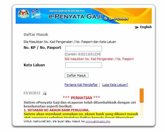 Semakan Penyata Gaji Online Anm E Penyata Laporan