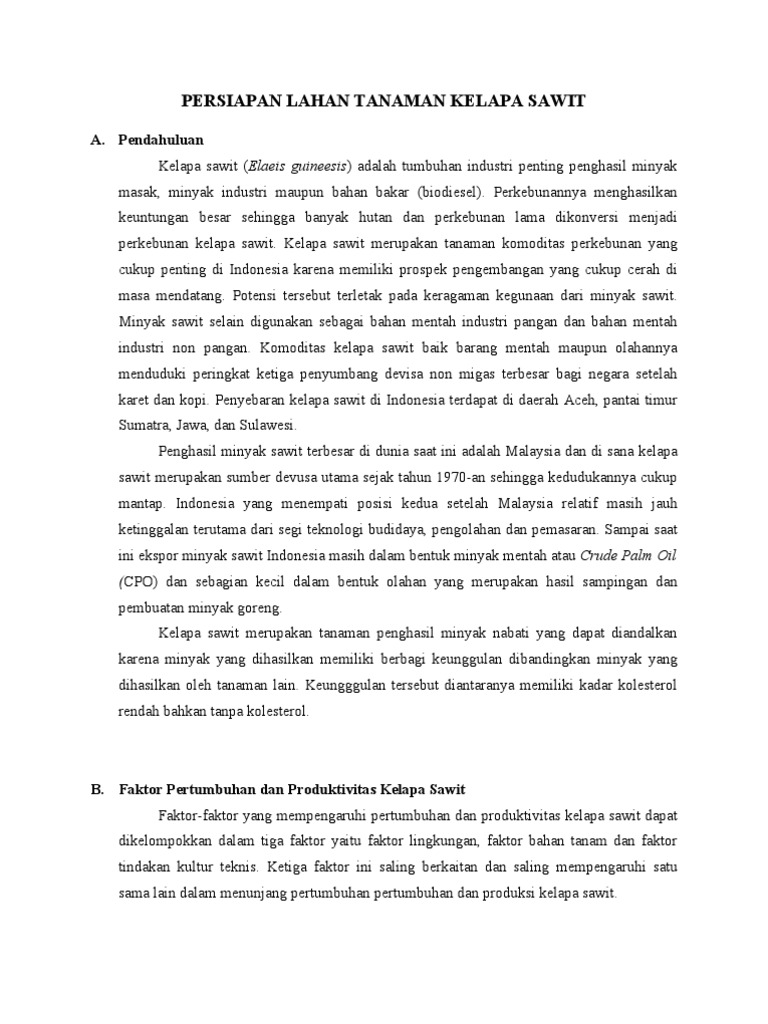Persiapan Lahan Tanaman Kelapa Sawit