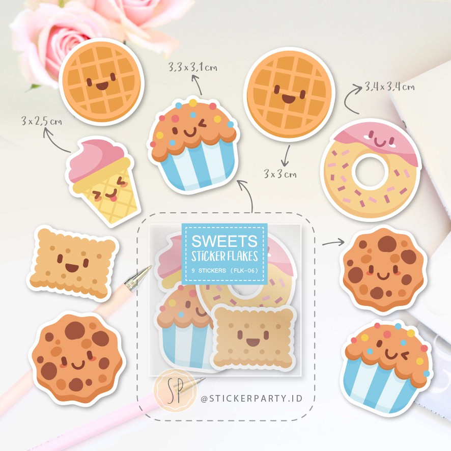 Sticker Party Stiker Gambar Makanan Lucu Cupcake Candy Cookies Flakes Shopee Indonesia
