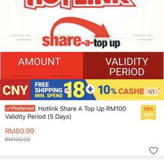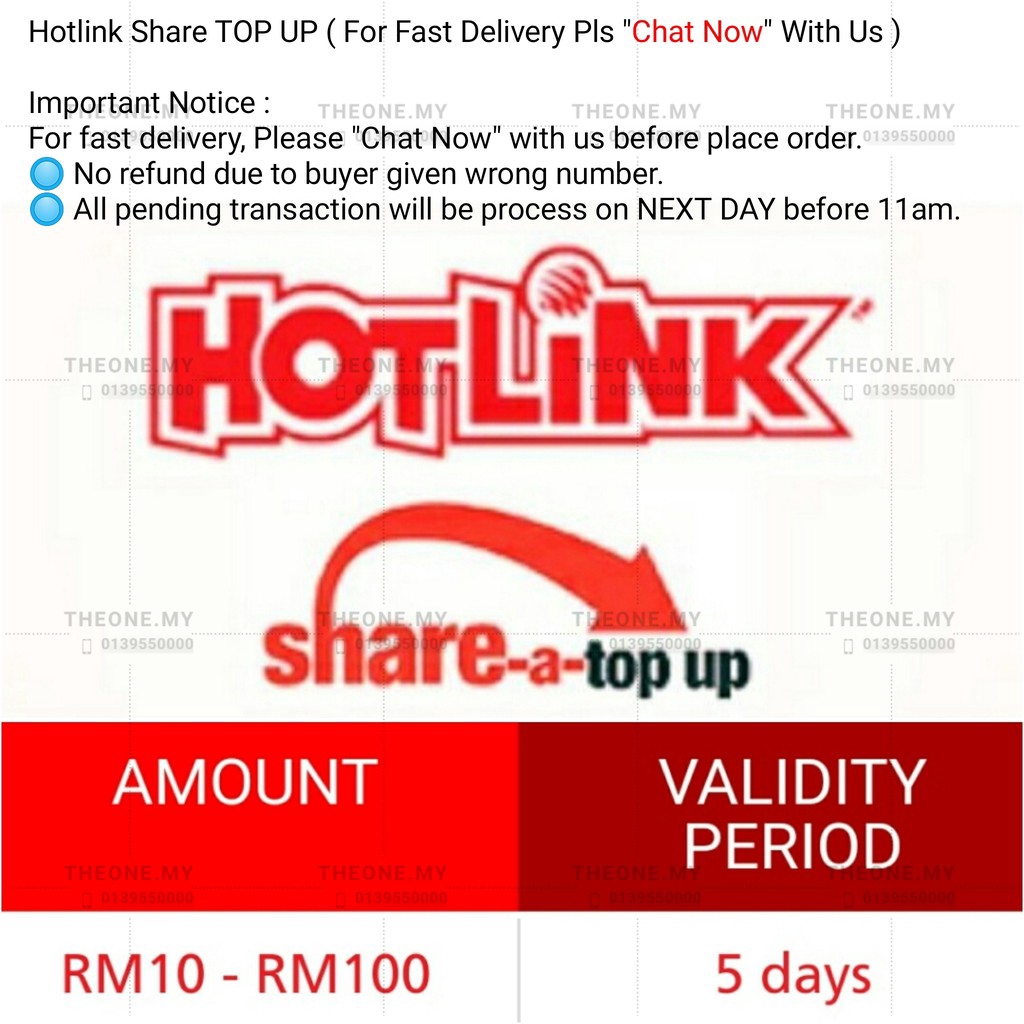 Hotlink Share A Top Up Rm100 Validity Period 5 Days Shopee Malaysia