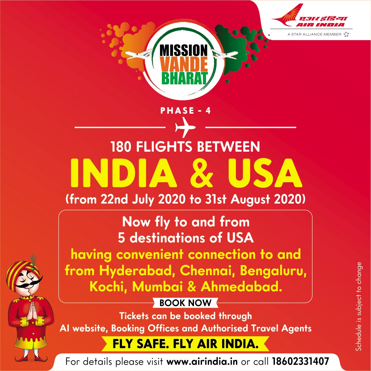 Air India On Twitter Flyai 180 Flights Between India And Usa Under Vande Bharat Mission Are Scheduled Tickets Can Be Booked Through Air India Website Booking Offices And Authorised Travel Agents
