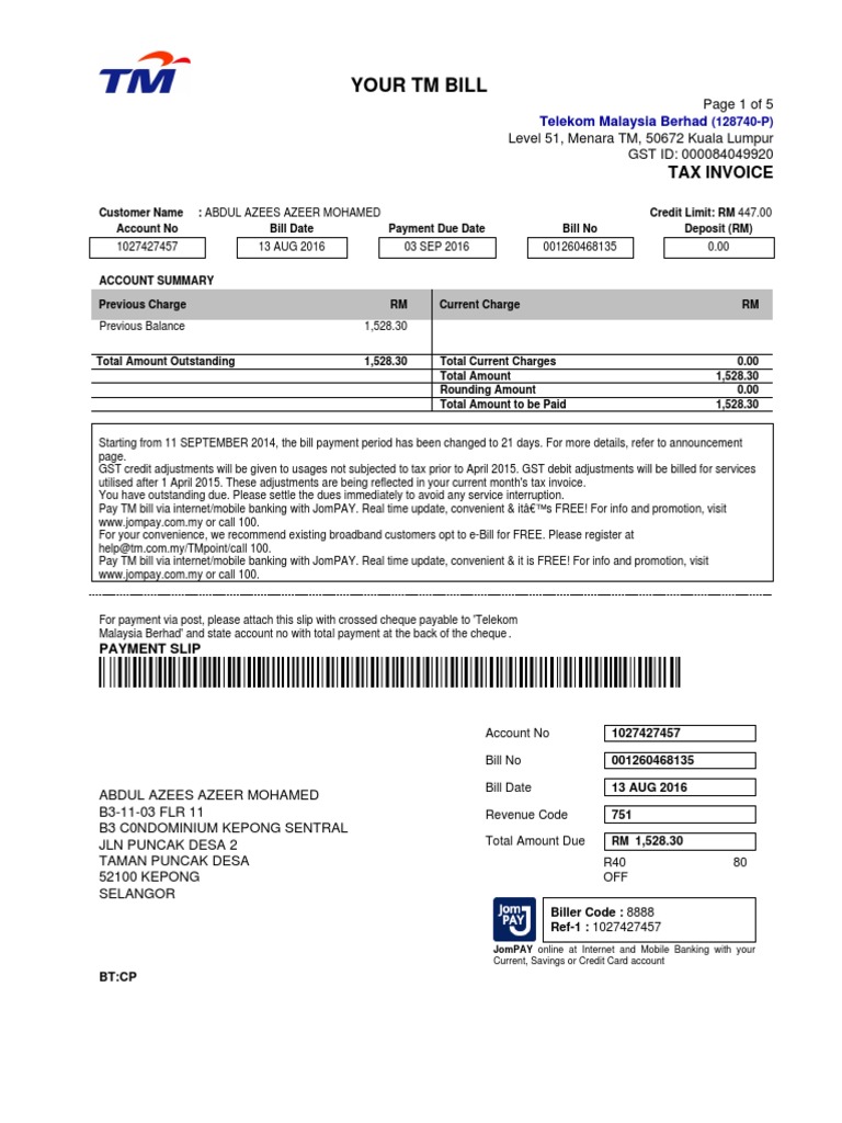 Malaysia Unifi Bill Templetes Invoice Debits And Credits