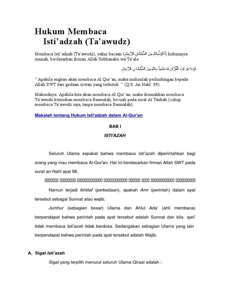 Isti Azah Hukum Membaca Isti Azah Kelas Bimbingan Rehal Facebook