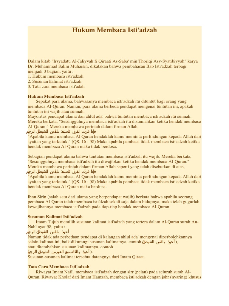 Isti Adzah Sebelum Membaca Alquran Yayasan Pendidikan Bayt Al Fath