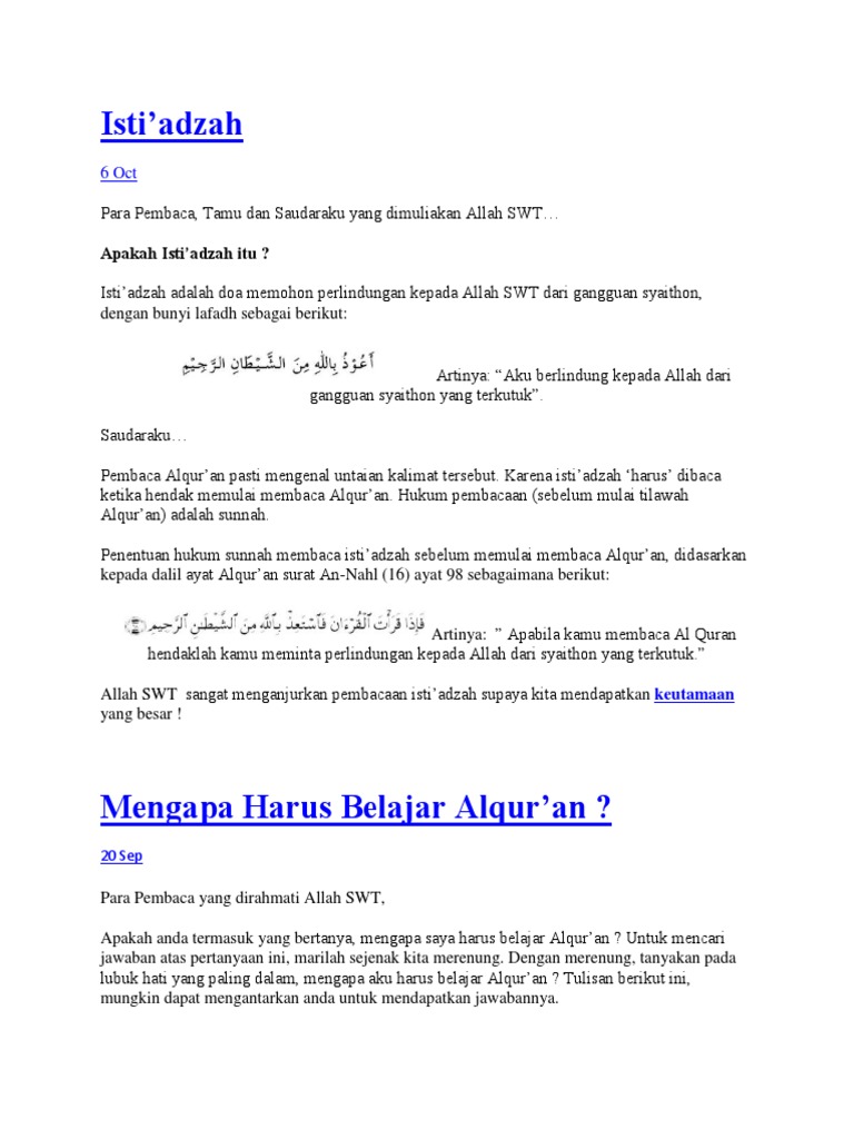 Wajib Atau Sunat Baca Isti Azah Setiap Kali Baca Al Quran Almukhlisin
