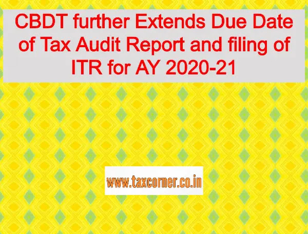 Cbdt Further Extends Due Date Of Tax Audit Report And Filing Of Itr For Ay 2020 21