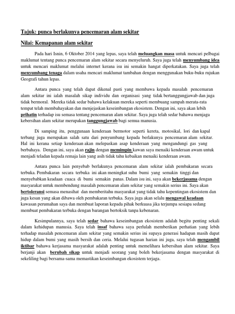 Contoh Karangan Isu Pencemaran Alam Sekitar 8 Contoh Cute766