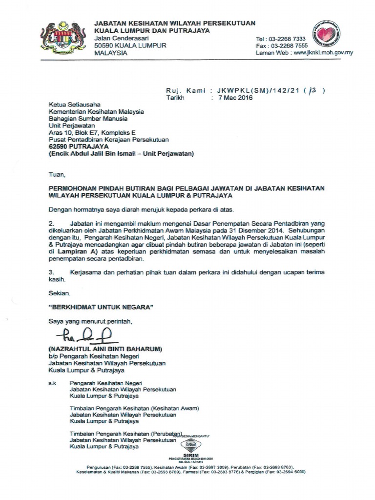 Jabatan Kesihatan Wilayah Persekutuan Kuala Lumpur Jalan Cenderasari 50590 Kuala Lumpur
