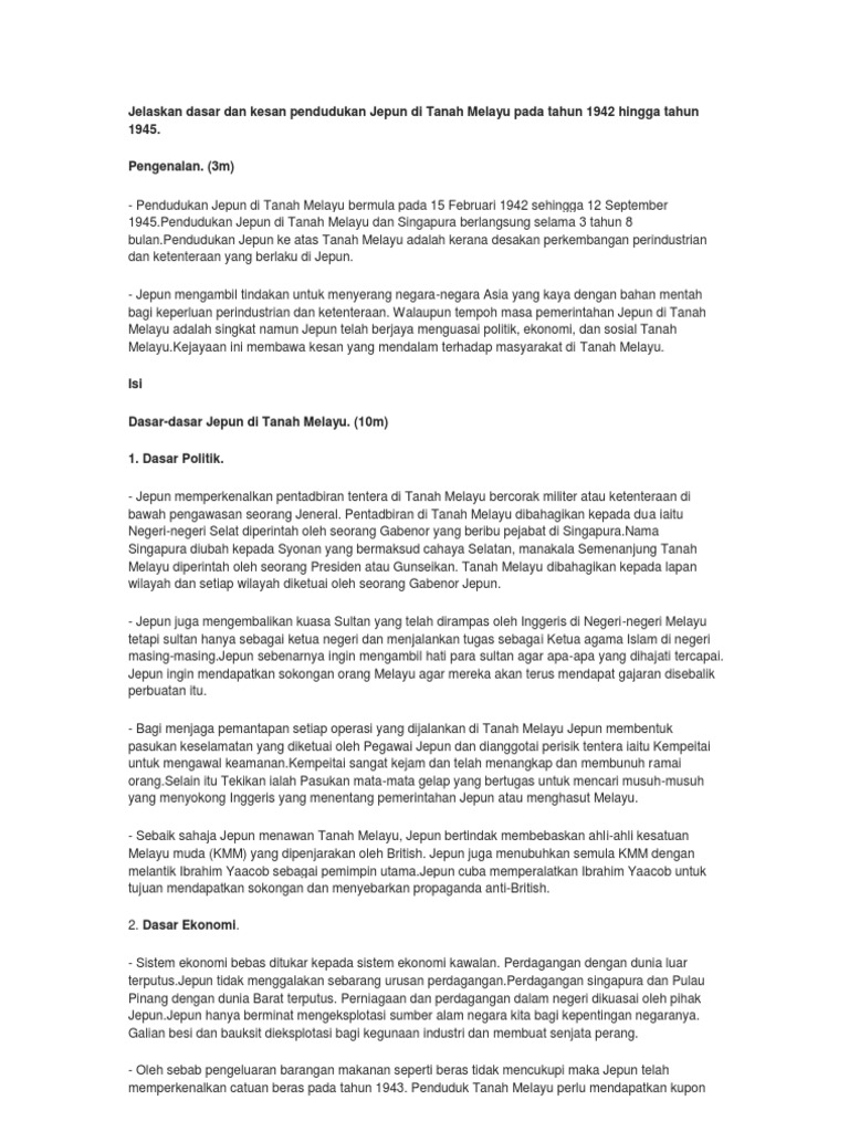 Dasar Dan Kesan Pendudukan Jepun Di Tana