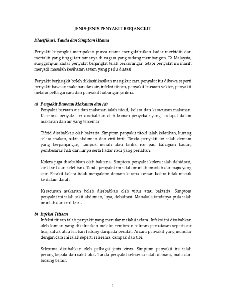 Jenis Jenis Penyakit Yang Boleh Berjangkit Di Malaysia