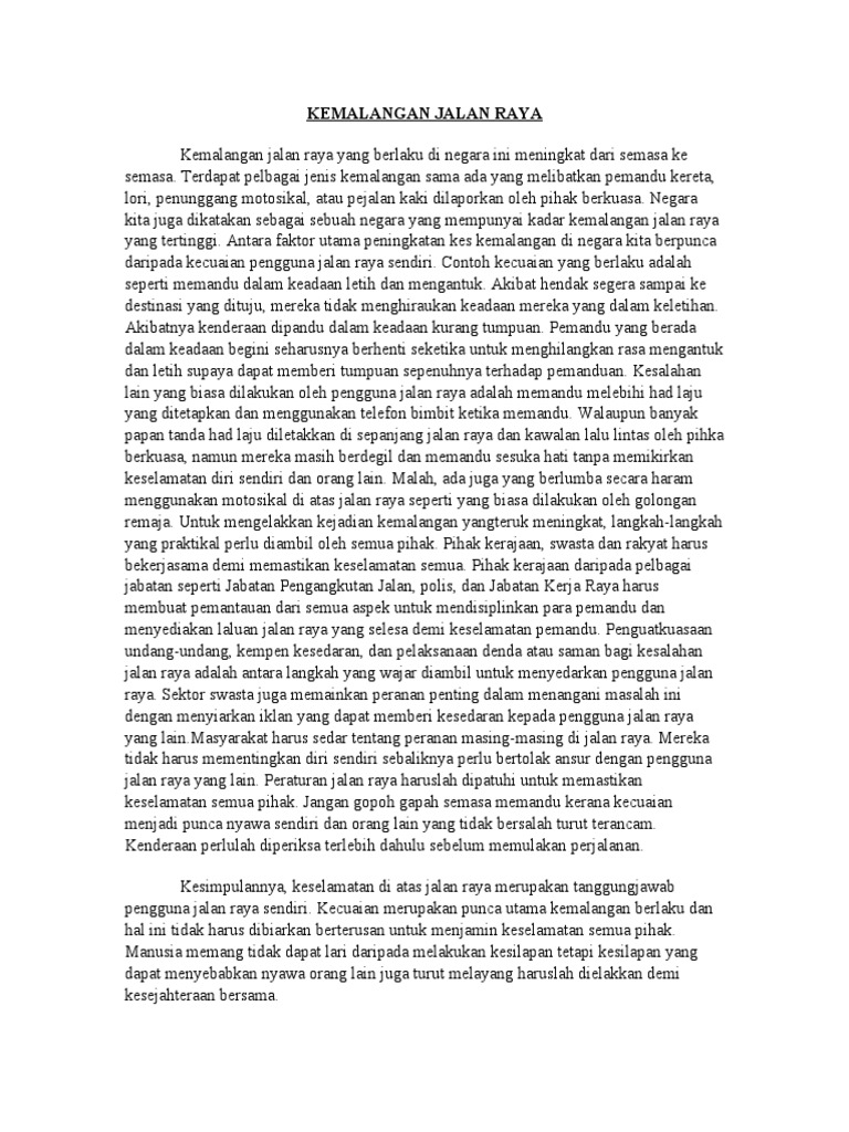 Karangan Amalan Pengguna Berhemah Di Jalan Raya
