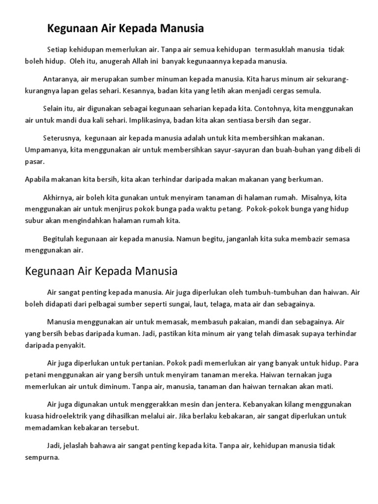 Contoh Karangan Upsr Kegunaan Air Kepada Manusia