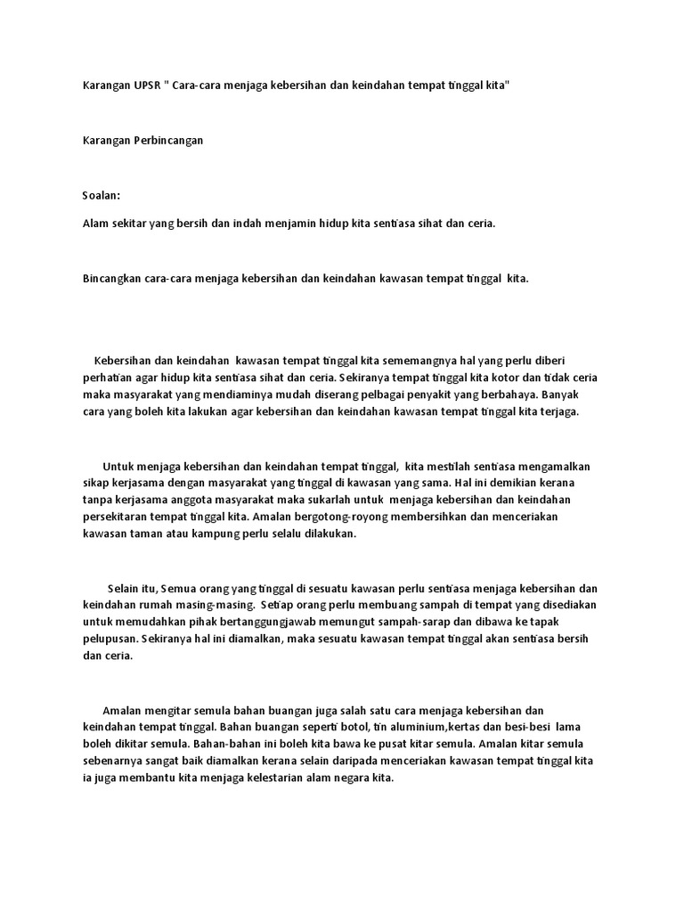 Karangan Kebaikan Kitar Semula Tahun 6