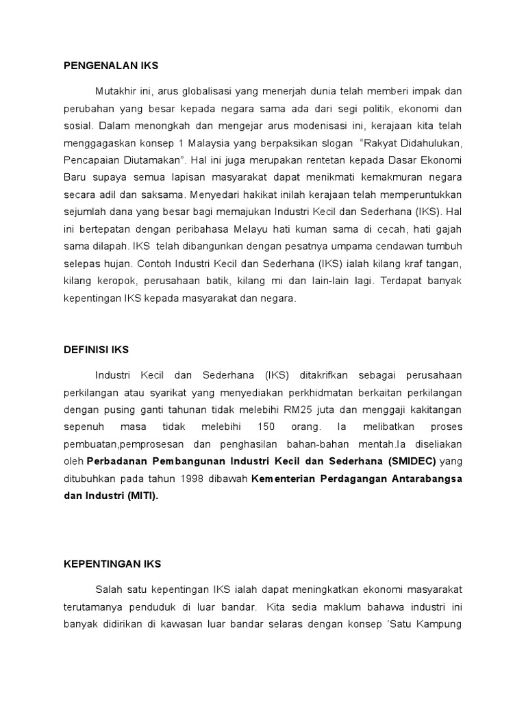 Karangan Industri Kecil Dan Sederhana Iks Ilmu Untuk Semua