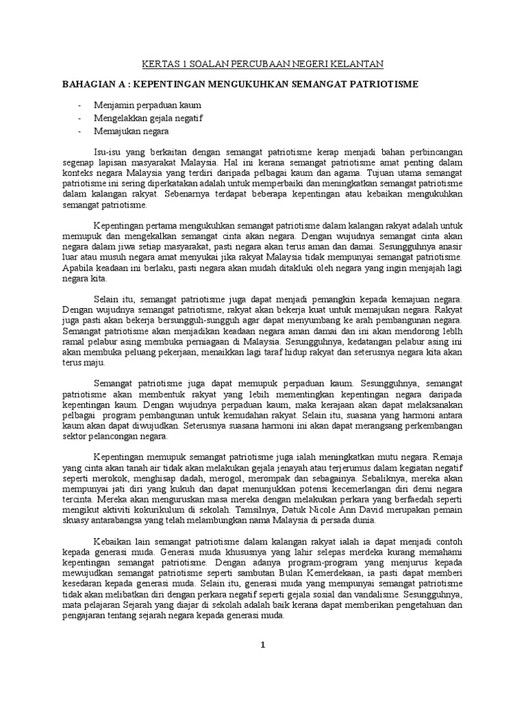 Contoh Karangan Kepentingan Mengukuhkan Semangat Patriotik