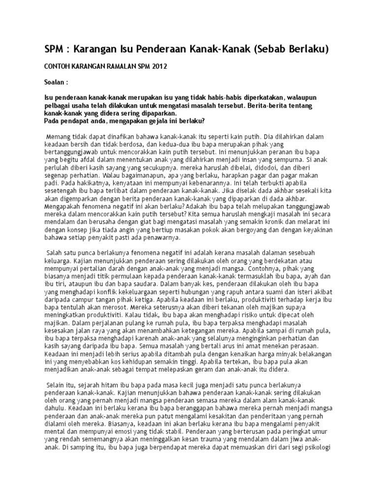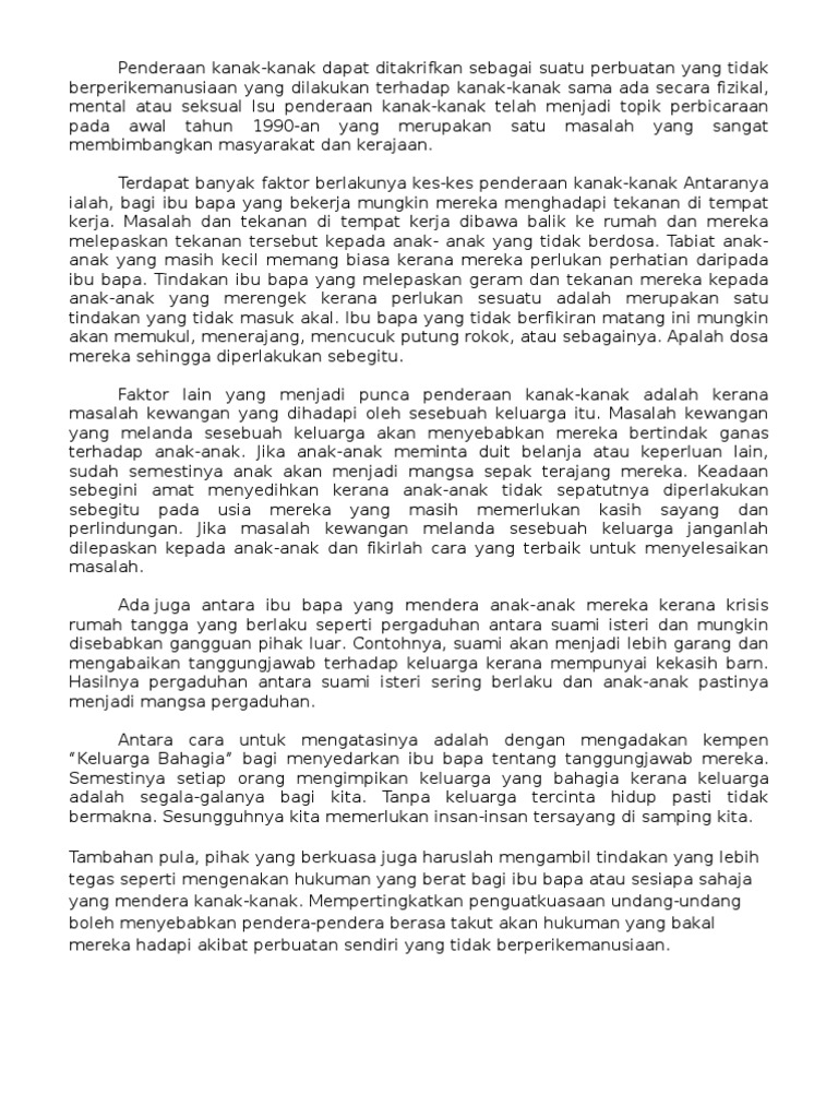 Contoh Karangan Bm Punca Punca Berlakunya Kes Penderaan Kanak Kanak Dan Cara Menanganinya Wattpad